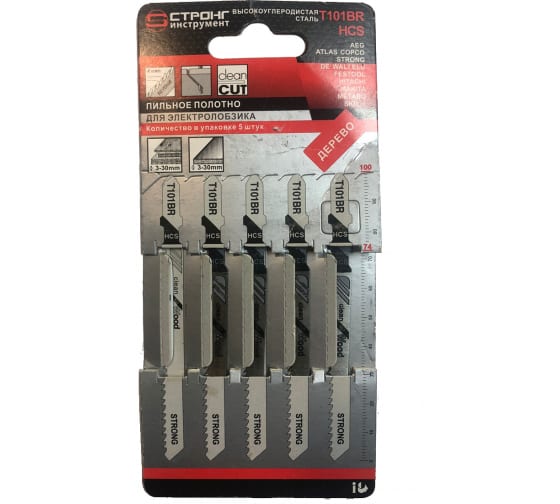 Пилки для лобзика STRONG T101BR L=74/100мм крупный зуб вниз