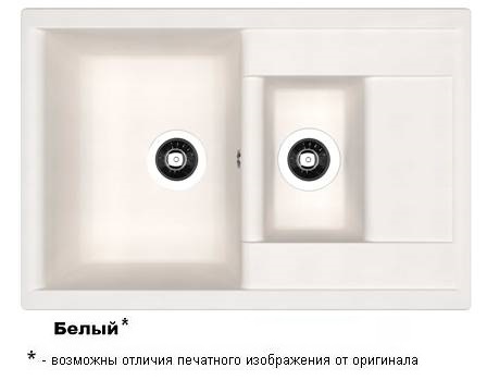 Мойка Д.GANS Астра 760 К, цвет белый СМс (с доп.малой чашей и крылом) (ПОД ЗАКАЗ)