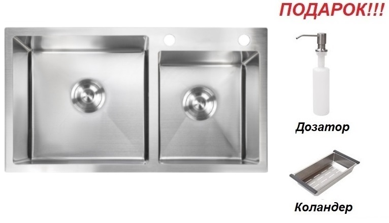 Мойка AMALET 78*48/1,5 мм(сифон) + ПОДАРОК(дозатор и коландер),металлическая, САТИН, серия СТАНДАРТ