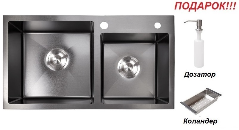 Мойка AMALET 78*48/1,5 мм(сифон) + ПОДАРОК(дозатор и коландер),металлическая, ГРАФИТ,серия СТАНДАРТ