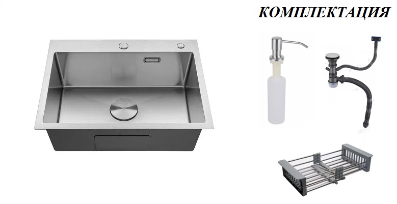 Мойка AVIVA 600*450мм,Нано Черный ДЕКОР.Комплектация:раздвижная корзина,дозатор,донный клапан, сифон